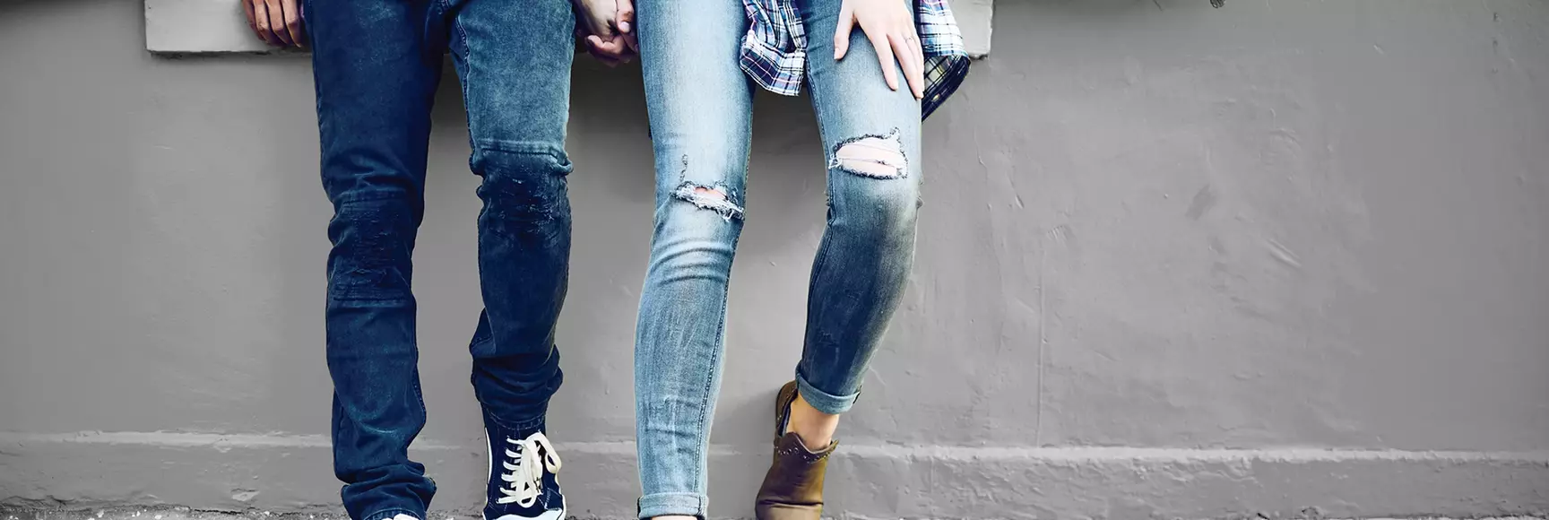 一对情侣穿着采用 LYCRA®(莱卡®)dualFX® 技术的牛仔裤。该技术将两种纤维结合,带来持久舒适性、合身性和塑形效果。